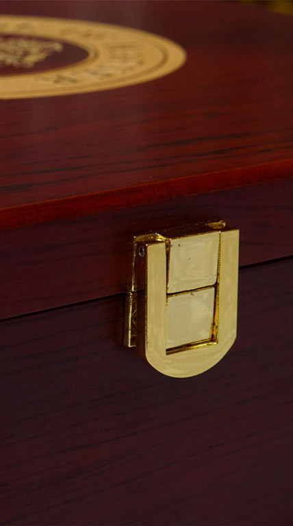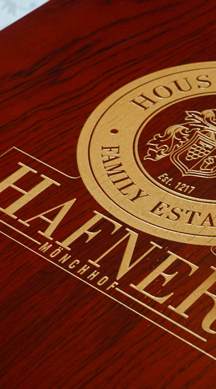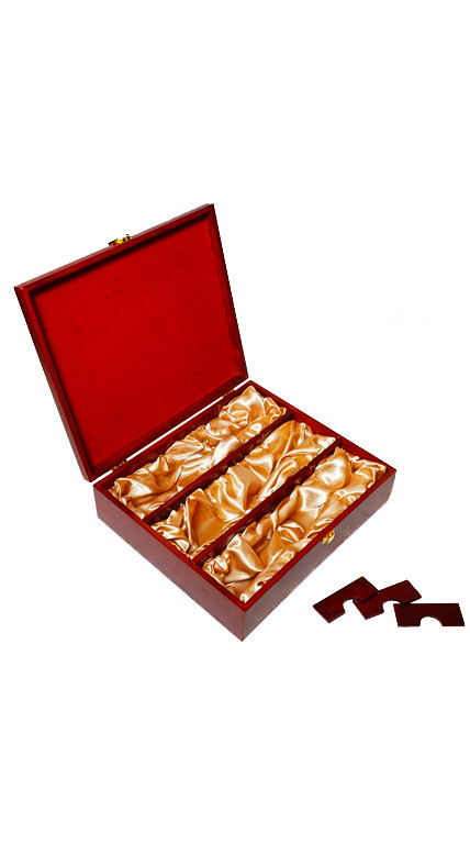 Pevná darčeková kazeta HAFNER s obahom na 3 fľaše, obsahuje saténovú a semišovú výstelku.